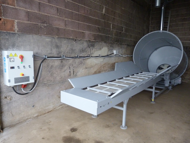 Length: 1200 mmThe machine is equipped with a V-belt drive and an extraction station to guarantee a smooth running in continuous operation. Stones or other foreign bodies can be separated. The transport of the chopped straw is done via the integrated fan which takes the material up to 20 meters (pipeline diameter 200 mm).