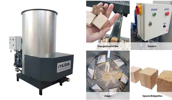 The smallest and most affordable muetek briquette press is extremely compact and impresses with its technology. Capacity: approx. 5 - 30 kg / h. Briquette shape: square. Materials: wood, miscanthus, peat, leather dust, paper, etc.