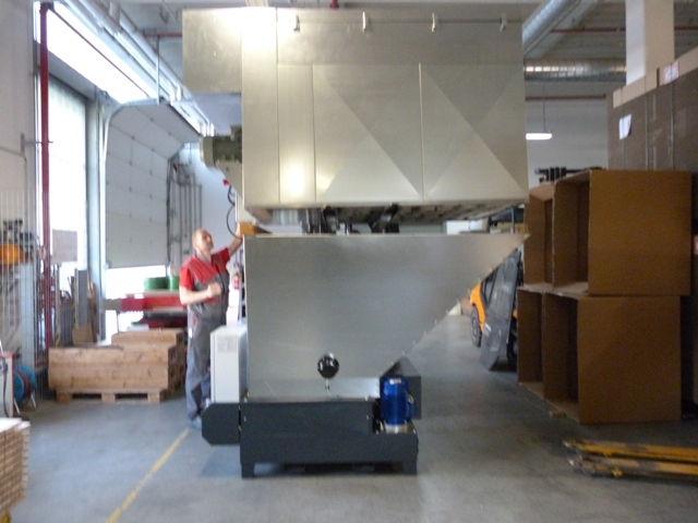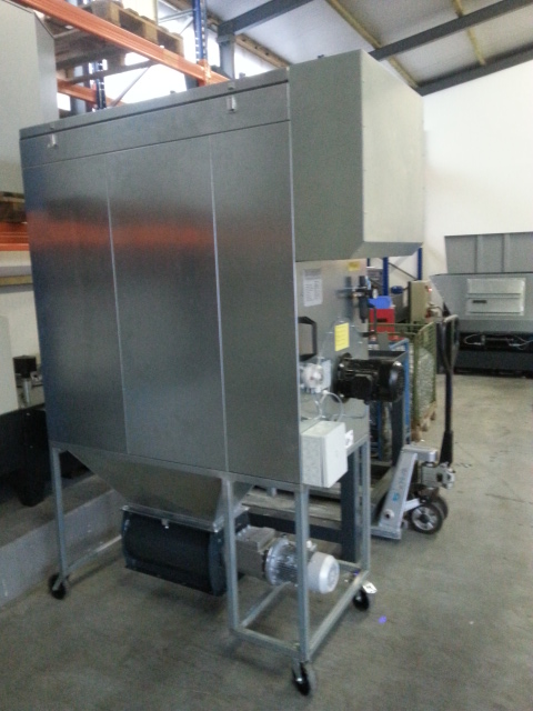 Optionally an automatic fan start and outlet for one or more processing machines as well as an automatic slide control can be provided. The MM-Jet 300 is additionally built with a standard, automatic eraser device. Larger stationary suction units for outdoor installation are available of up to an air output of 50,000 m³ / h.