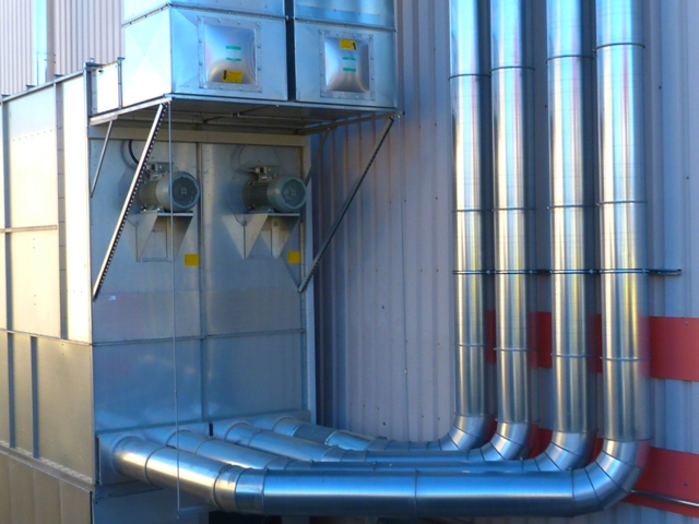 Filter systems are available on a steel frame for loading containers, the discharge is carried out without pressure via a rotary valve gate. The mütek filter systems are supplied with all necessary safety devices. The jet cleaning ensures trouble-free continuous operation. For energy saving, the systems can be operated with 100% air return. mütek Systemtechnik also offers frequency-controlled fans.
