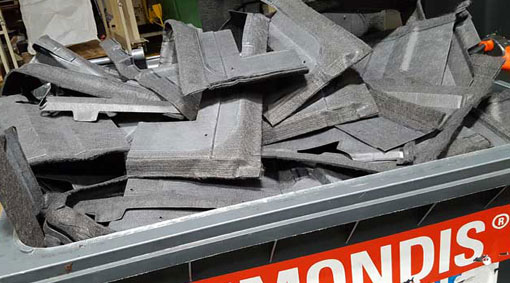 Shredding and briquetting of acoustic mats as a prerequisite for the recycling process