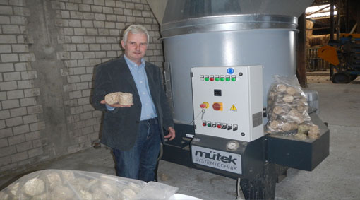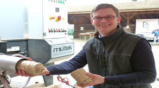 Anton Sieverdingbeck produces miscanthus briquettes on his mobile briquetting machine muetek MPP 280