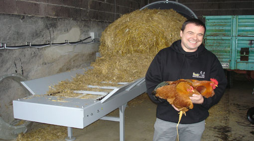 Chicken farmer Mr. Zeeb operates a straw heating system as an energy source for his chicken houses and building.